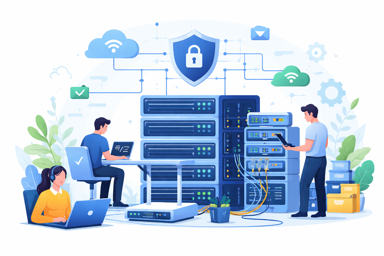 Firewall hardening, endpoint security, access policies, and best-practice security controls.